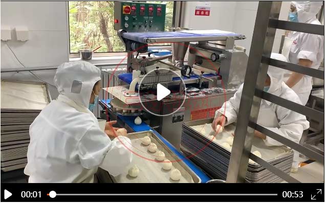 工作流程:供餡料斗->供面?zhèn)鬏攷?>包制->切斷成型->傳送帶->醒發(fā)->蒸制。