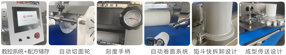 壓面成型面皮,可增加產品表面光潔,不傷面筋。